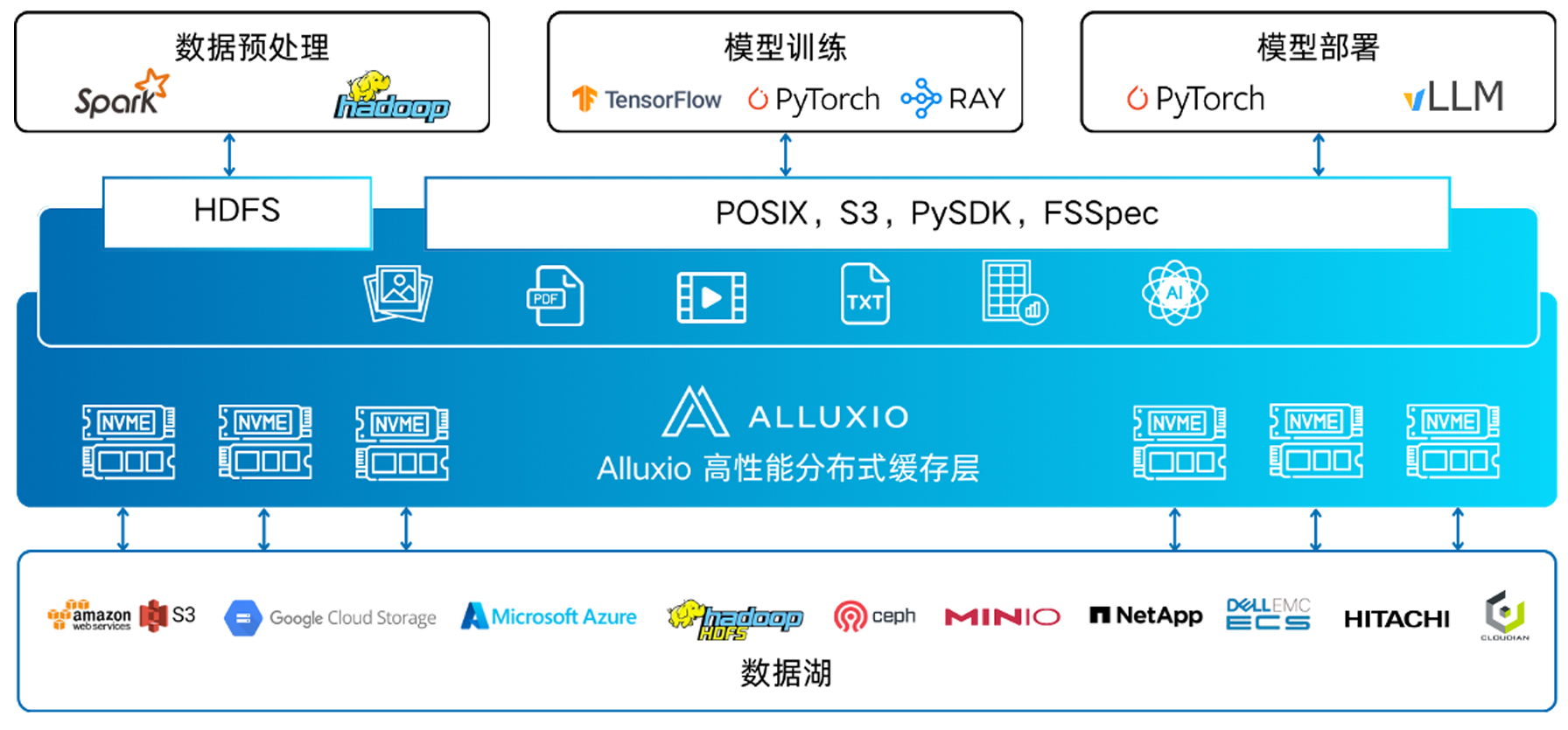 Alluxio作为轻量级分布式缓存部署在AI计算工作负载